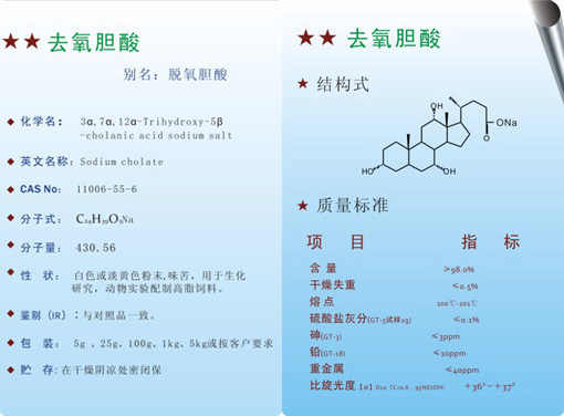 宝积生物去氧胆酸由化工专家根据国内外新技术和研究成果,经先进的生产工艺和设备加工而成。成品经过了严格的质量控制和检验工序,深受广大合作伙伴好评。咨询热线:0571-88604801 详细信息可点击:www.hzaoji.com